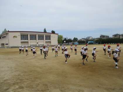 「イチ ニ サン シ」運動場から先生の号令が聞こえてきました。2年生が体育の授業を受けていました。整列して準備運動を頑張っていました。身体がほぐれたところで、今日は運動場をいっぱいに使って、いろいろな走り方を楽しみました。