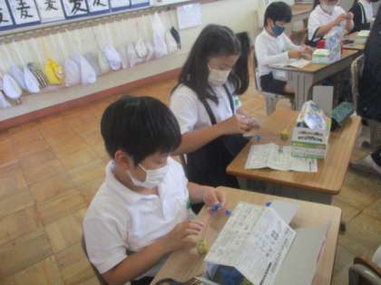 「電気のはたらき」の学習をしている4年生の子どもたち。今日は電気の流れの強さを実験するために、実験キッドを開いて準備しました。銅線をモーターや電池につなぐために、銅線の端を加工したり、電池に銅線をつなげるための金具を取り付けたりしました。さぁ、準備が整ったら実験を始めていきましょう。
