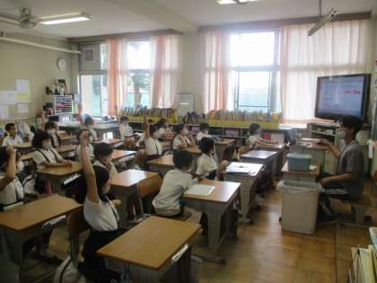 2年生の教室をのぞくと、先生の発問を聞いてたくさんの子どもたちが手を挙げていました。算数で長さの学習をしています。今日はいろいろな長さをセンチメートルやミリメートルで表す学習をしました。「1センチメートルは10ミリメートルだから…」と頭に浮かべながら、先生の発問に答えていました。