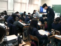 6年給食の様子です。給食の内容を伝える当番さんが「いただきます」の前に皆さんに伝えていました。