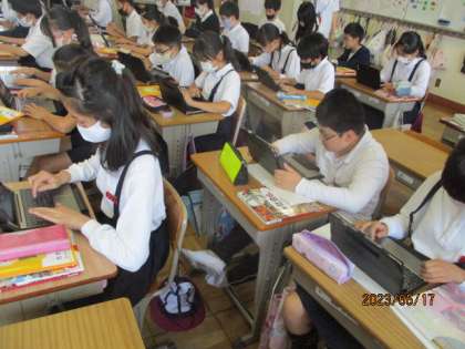 6年生 社会 公開日 2023/05/17 更新日 2023/05/17 6年生 国会について、自分なりにまとめた発表資料を、PC上で交流しました。仲間の発表資料を見合いながら、互いにアドバイスし合う活動を取り入れていました。仲間に自分の考えを見てもらい、より真剣に学習に取り組むことができました。