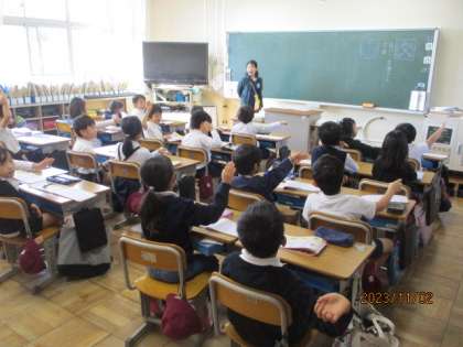 漢字ドリルに取り組みました。「交」の字を勉強しました。交たい、交通ルール、交番…。「校」とよく似ていることもわかりました。書き順をみんなで手でなぞりました。ばっちりでした!