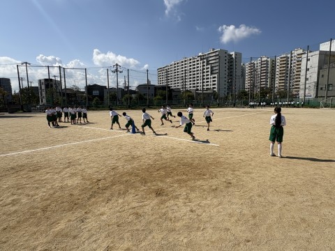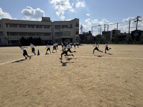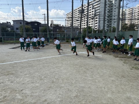 10月1日(水)の体育の時間ではバトンパスの練習をしていました。