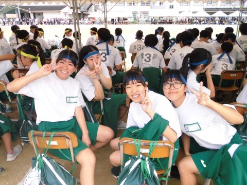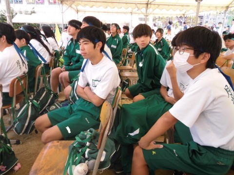 3年生の応援席では、全力で応援したり、学年種目の前にみんなで団結力を高めたりと、中学校生活最後の体育大会を思いきり楽しんでいました。