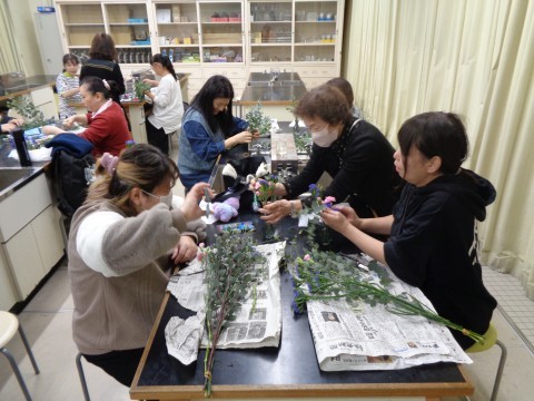 PTA文化講習会として,月州中学校で「生け花体験」を行いました。
