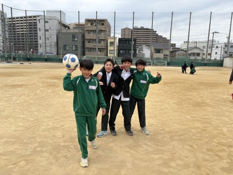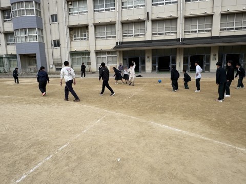 今日は3年生が私立高校の入試、2年生が学年閉鎖だっため、昼休みのグラウンドは1年生だけでした。
