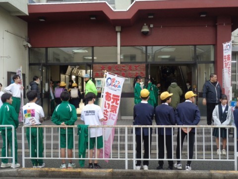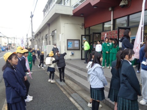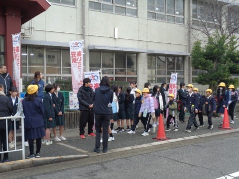 三宝小学校で小中合同あいさつ運動を実施しました。
