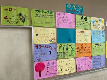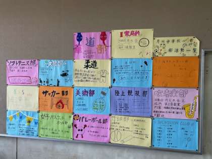 来週から1年生の部活動参加が始まります。1年のクラスに各部の2・3年生が描いてくれたポスターが掲示されています。どの部も丁寧に仕上げてくれていました。