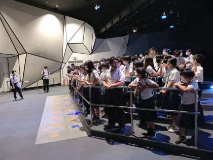人と防災未来センターにて、阪神淡路大震災の映像を鑑賞しました。写真は、4・5・6組の様子です。