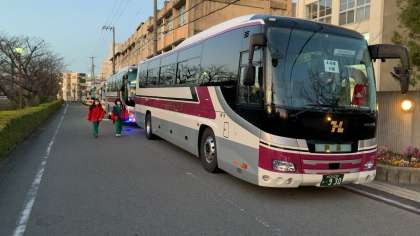 バスが正門前に到着しました。