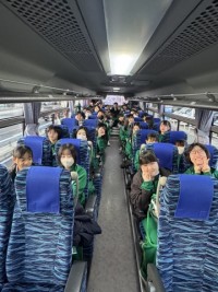 バスに乗り込んでいます。