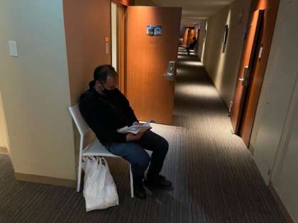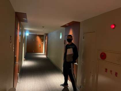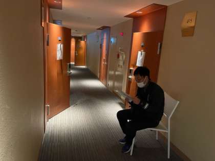 先生方が廊下で見守っています。