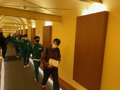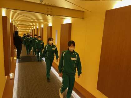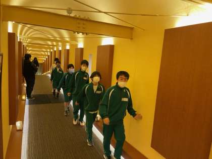 朝食場所へ、移動しています。