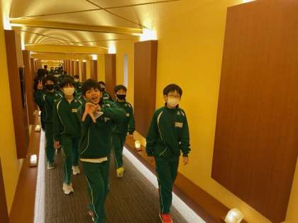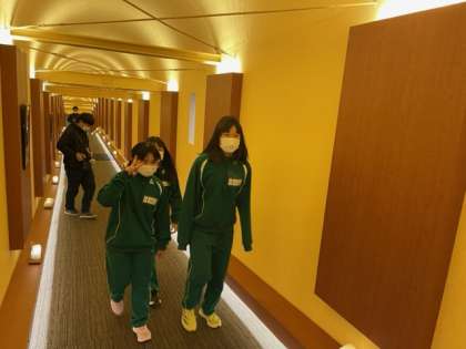 朝食場所へ、移動しています。