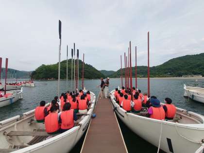 カッターボート体験。1組女子は1位金メダルでした。男子は…チームワークは1位でした!体育大会でリベンジしましょう!