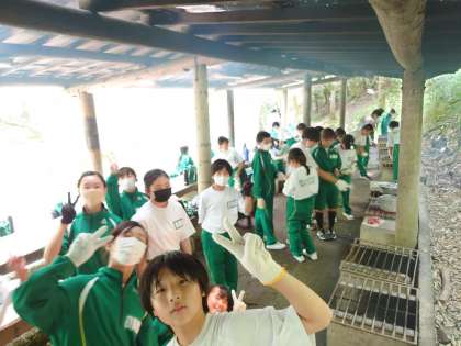 1.2組のカレー作りの様子です。みんな頑張ってます!ときおり奇声も聞こえますが(笑)