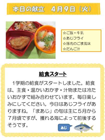 4月9日(火)本日の給食
