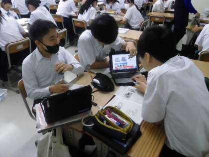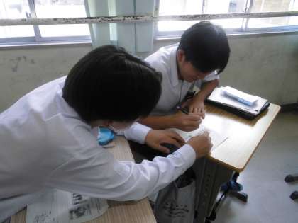 わからないところを訊き合ったり調べたりしながら、課題に取り組んでいました。