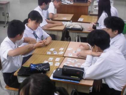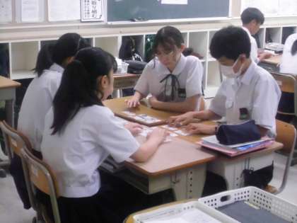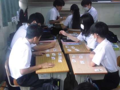 カードをつかったゲーム形式で、「I will 〜.」の表現を復習しました。
