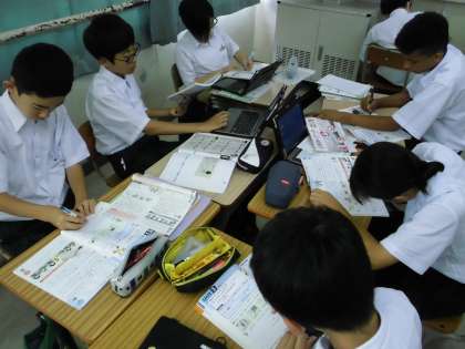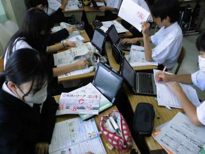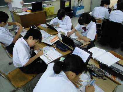 教科書の本文をノートに書き写したり、ワークの課題に取り組んだりしていました。