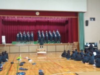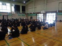 初めてであるにもかかわらず、多くの生徒が残り、学級旗作成に励んでいます!