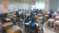 3年生の体育では、体育大会で披露する集団演技の練習に取り組んでいます。