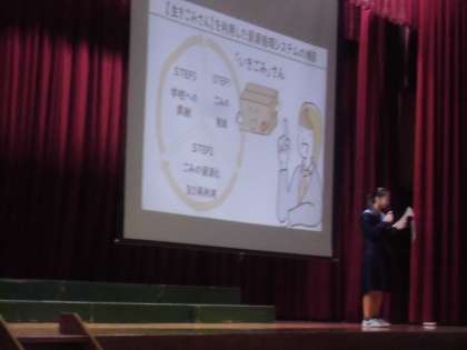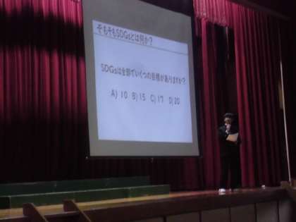 途中でクイズが出題され生徒たちも手を挙げるなど,SDGsとは何かを知る・考える時間となりました。