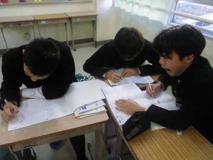 25日(月)からの期末テストに向けて、課題など自学習に取り組んでいます。