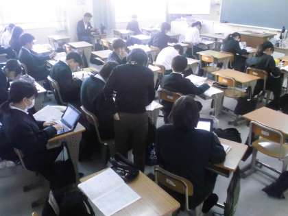 25日(月)からの期末テストに向けて、課題など自学習に取り組んでいます。