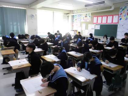 3年4組・5組・6組の期末テストの様子です。