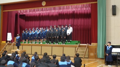3年生が合唱コンクールのリハーサルをしている様子です。
