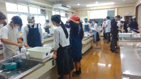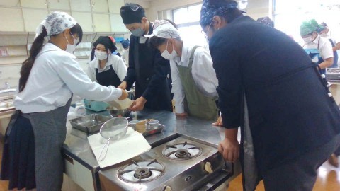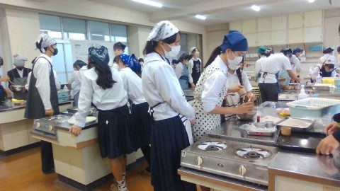 2年生は家庭の時間を使って調理室で調理実習を行っています。