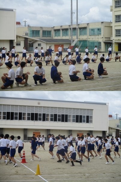 一週間後に体育大会を控え、全学年が揃っての練習を行いました。