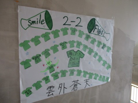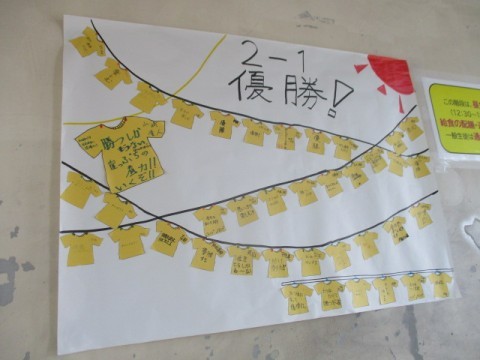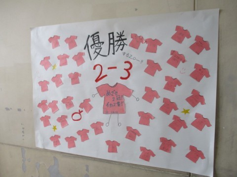 体育大会の成功に向けて、抱負を寄せ書き風にした掲示物が