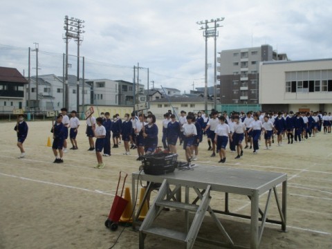 本校は運動場が手狭なことから、生徒席から直接招集場所に移動します。