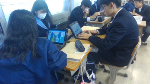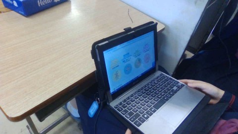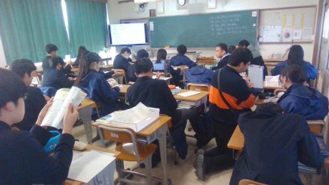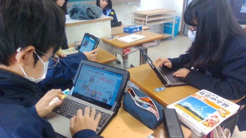 2年生の英語では、1人1台パソコンを使って英語プレゼンテーションの準備をしています。