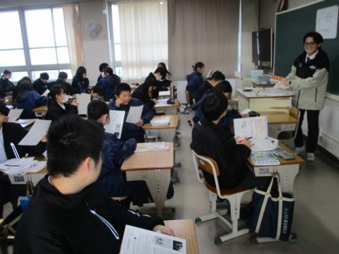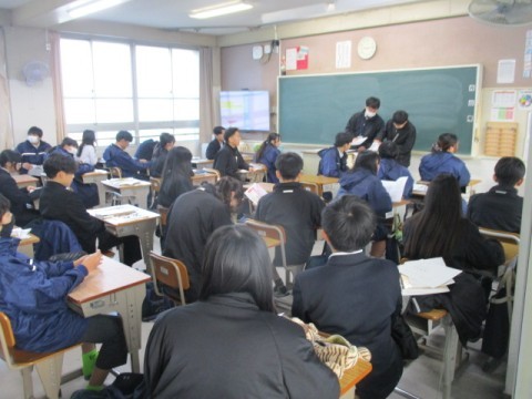 和気あいあいと作業を進めていきます。担任の先生も生徒の様子を記録しています。