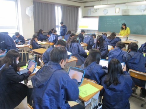 2限の学活を活用し、新規導入されたipadを使ってアンケートに