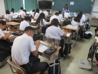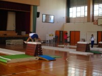 3年男子体育 ハードル走 公開日 2025/09/30 更新日 2025/09/30 3年 先日来,陸上競技のハードル走に取り組んでいます。本校のハードルは足が引っかかっても転倒しにくい可動式のバーなので、比較的安全に練習ができます。休憩と補足説明を入れながら、次々と練習を進めました。