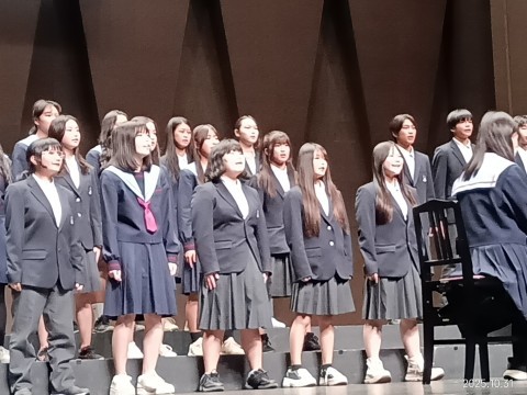 本格的なホールという環境にものおじせず、堂々と歌いあげてくれました。他校の発表も見事で、生徒たちは真剣に鑑賞していました。