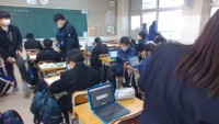 2年生は先日のフィリピンを襲った台風のために延期となったオンライン英会話を本日行っています。