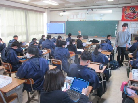 3年学活 公開日 2025/12/23 更新日 2025/12/23 3年 毎年2学期から3学期にかけて生徒や保護者を対象にした「学校をよりよくするためのアンケート」を実施しています。 2限の学活を活用し、新規導入されたipadを使ってアンケートに回答してもらいました。