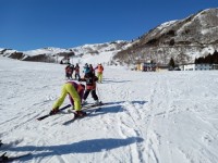 講習を開始しました。ほとんどの生徒にとって初めてのスキーです。