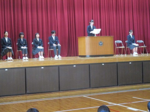 耳を傾ける1,2年生も演説後にはしっかりと拍手を送っていました。