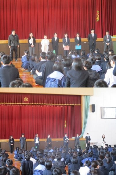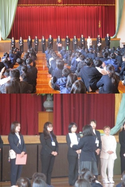 着任式、始業式 公開日 2026/04/08 更新日 2026/04/08 全学年 クラス発表を終えて整列した2,3年生に続いて1年生が体育館に到着し、始業式を行いました。 始めに、今春着任された先生方を紹介し、次に各学年の担当職員を発表しました。