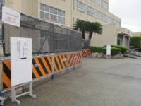 ・1,2年校舎(本館)への入館は正面玄関、1階南側