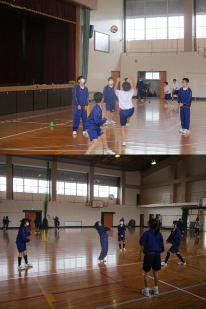 今日は体育館でマット運動に取り組みました。前転からの開脚,後転からの開脚など、