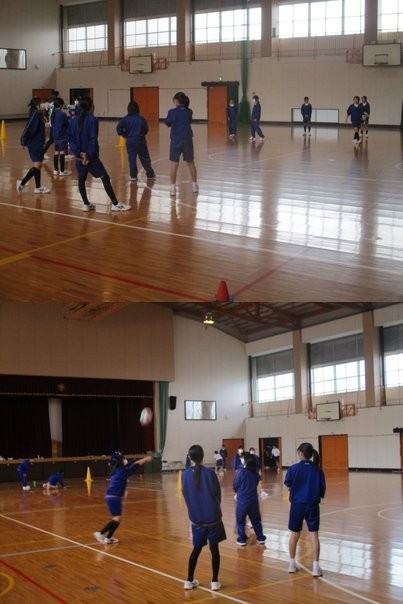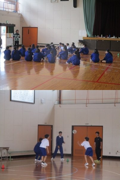 最後は対戦形式で行い、ネットなし、ワンバウンドあり、
