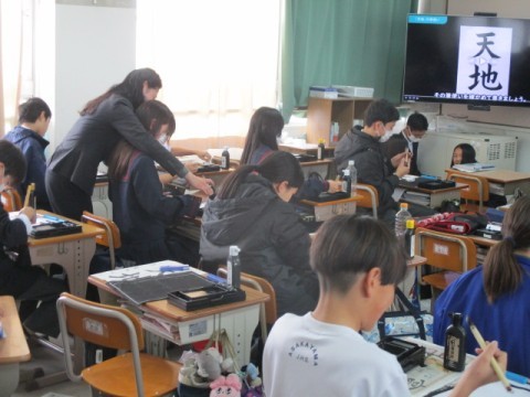 1年国語科では現在書写に取り組んでいます。日頃毛筆に