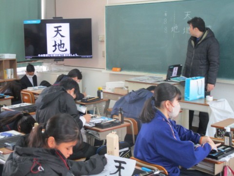 なじみがない人も、心を落ち着けて一生懸命半紙に向き合います。